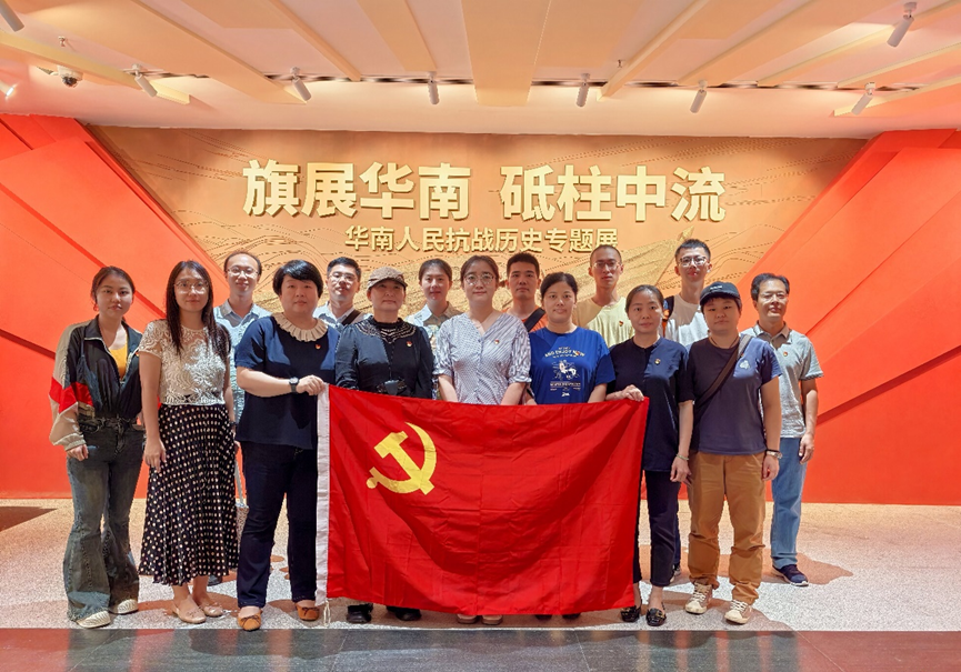 为深入学习习近平总书记在纪念中国人民抗日战争暨世界反法西斯战争胜利80周年大会上的重要讲话精神,大力弘扬爱国主义精神和伟大抗战精神,10月10日,中心第一、第四党支部组织党员赴广东省档案馆参观“旗展华南 砥柱中流——华南人民抗战历史专题展” ,开展 “赓续华南烽火志,擎旗奋进续新篇”主题党日活动。
