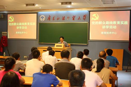 8月31日下午,教育技术中心(实验教学中心)在北校区六教A209开展了党的群众路线教育实践讲学活动。活动由教育技术中心(实验教学中心)乔万林主持,校党委常委陈德萍副校长、学校实践办包生耿和中心全体党员参加了本次讲学活动。