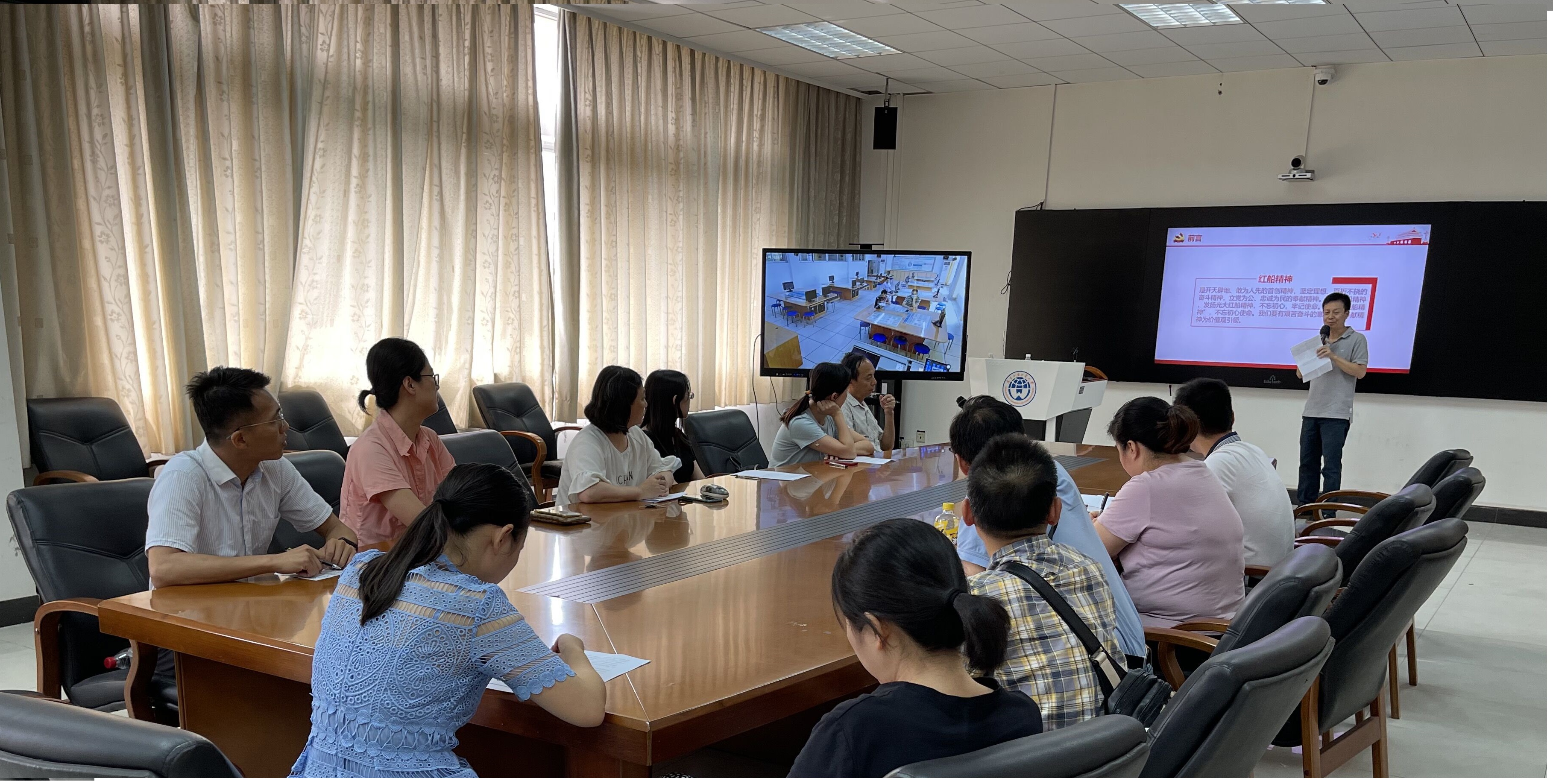 首先,李别同志主讲题为“传承红船精神,不忘初心使命”的党课,从内涵、特征两方面讲解“红船精神”,其核心内涵孕育了中国共产党是一个勇于创新、富于进取精神的马克思主义政党,并结合实际工作谈到个人的党史学习教育心得,学习并传承“红船精神”,坚持艰苦奋斗的意识,以奉献精神为价值观引领,做好教学服务工作。