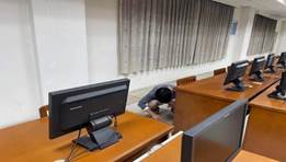 在接下来的活动过程中,南电脑实验室的学生党员志愿者们在第二党支部书记李别同志的带领下,分别由陈开华、文明珠、刘江辉等同志组织50名学生党员志愿者完成了南校区实验楼B、C区一至四层的多媒体课室、基础实验室、专业实验室等室内设备资产号序列号信息核对及软件安装情况统计、学生机软硬件运行情况检查、课室安全维护等任务。58名学生党员志愿者在第三党支部书记黄伟波同志和南语言实验室老师们的组织下开展微课制作、专业实验室维护及技术应用,并为实验楼D、E区的语言实验室、专业实验室的终端及学生机系统软件更换外接配件等。同学们在老师们的指导下,圆满完成志愿服务工作,为实验室师生教学顺利高效开展提供技术保障。